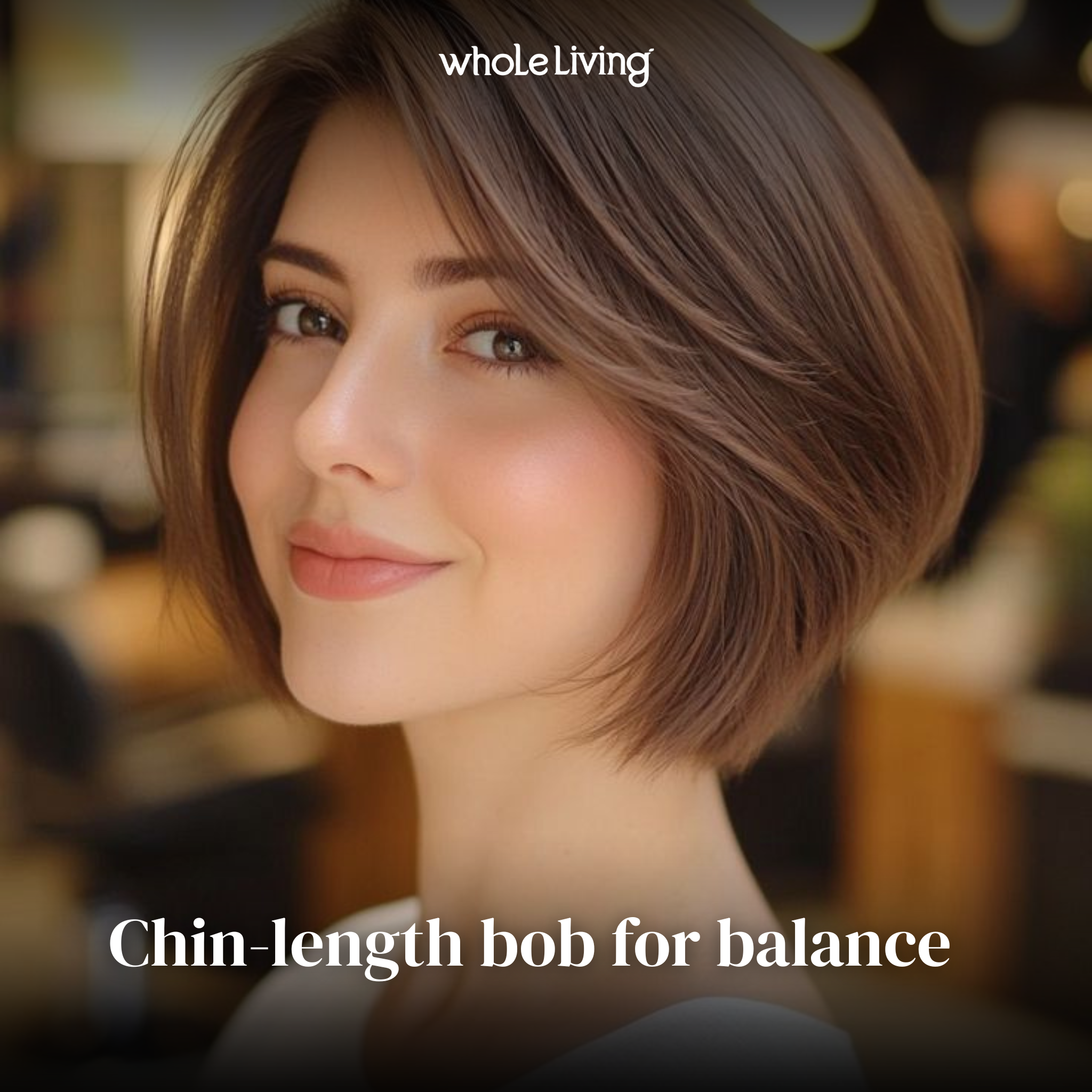 Style tip: Blow-dry with a round brush to keep volume on the lower half of your face