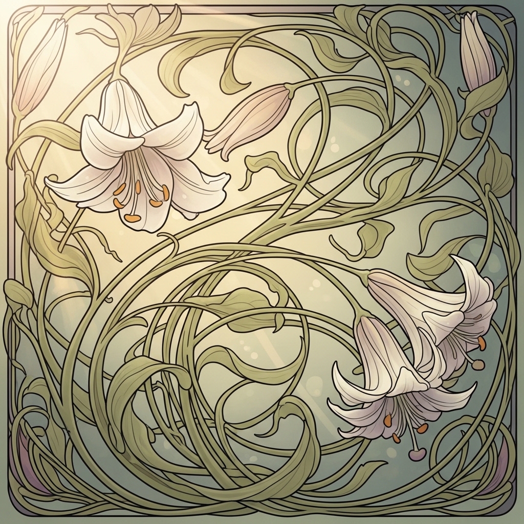 This lily style and noodle style, also called Style Nouille, echo soft movement. In addition, the Style Coup de Fouet curves suggest breath and motion. Through these shapes, Art Nouveau artists honored balance in body and space.