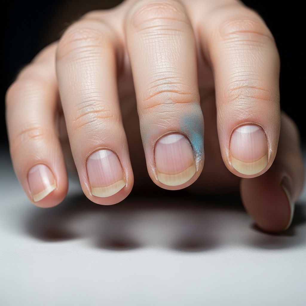 The human nail unit — nail plate, nail bed, lunula, and surrounding tissue — draws from a dense capillary network tied directly to systemic blood flow. Unlike skin tone or facial appearance, nail color shifts resist attribution to passing stress or cosmetic variation.