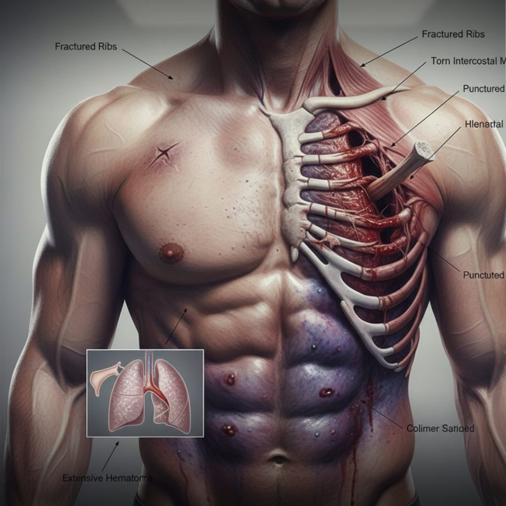 Every part of your body responds differently to blunt force injury. Some areas can absorb stress smoothly. Others may face life threatening injuries depending on the location of the impact. For example, the chest area holds the heart and lungs. When the chest experiences blunt chest trauma, the ribs protect vital tissues. Yet heavy force may cause rib fractures, chest wall injuries, or swelling around breathing muscles. These reactions change the way air moves through the lungs.