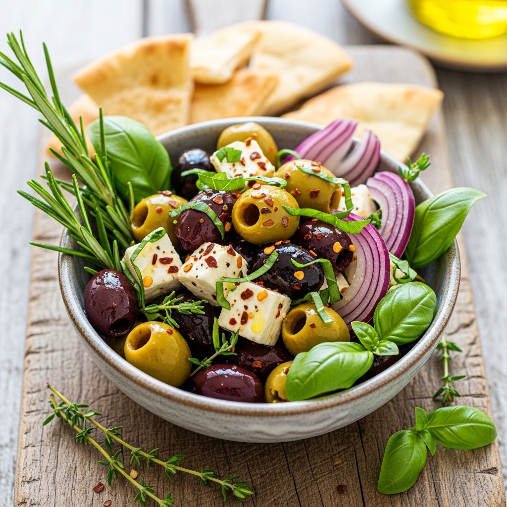 8. Quick Olive and Herb Snack Bowl