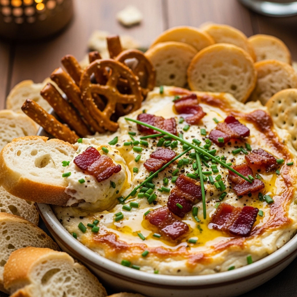 Every snack table benefits from rich cheesy dips. A warm creamy dip invites people to gather and enjoy the moment. Cook chopped bacon until crispy. Mix it with cream cheese, roasted garlic, and a little butter. The mixture becomes smooth and full of flavor. Warm the dip gently in the oven. The aroma alone will draw people toward the table.