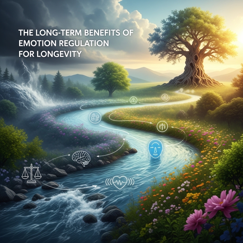 Effective emotion regulation not only impacts immediate performance but also contributes to long-term health and longevity. Chronic stress accelerates biological aging by increasing cortisol, which causes cellular damage. Research in The Lancet shows that managing stress through emotion regulation can slow biological aging and reduce the risk of chronic diseases. This leads to a longer, healthier life and greater productivity over time.