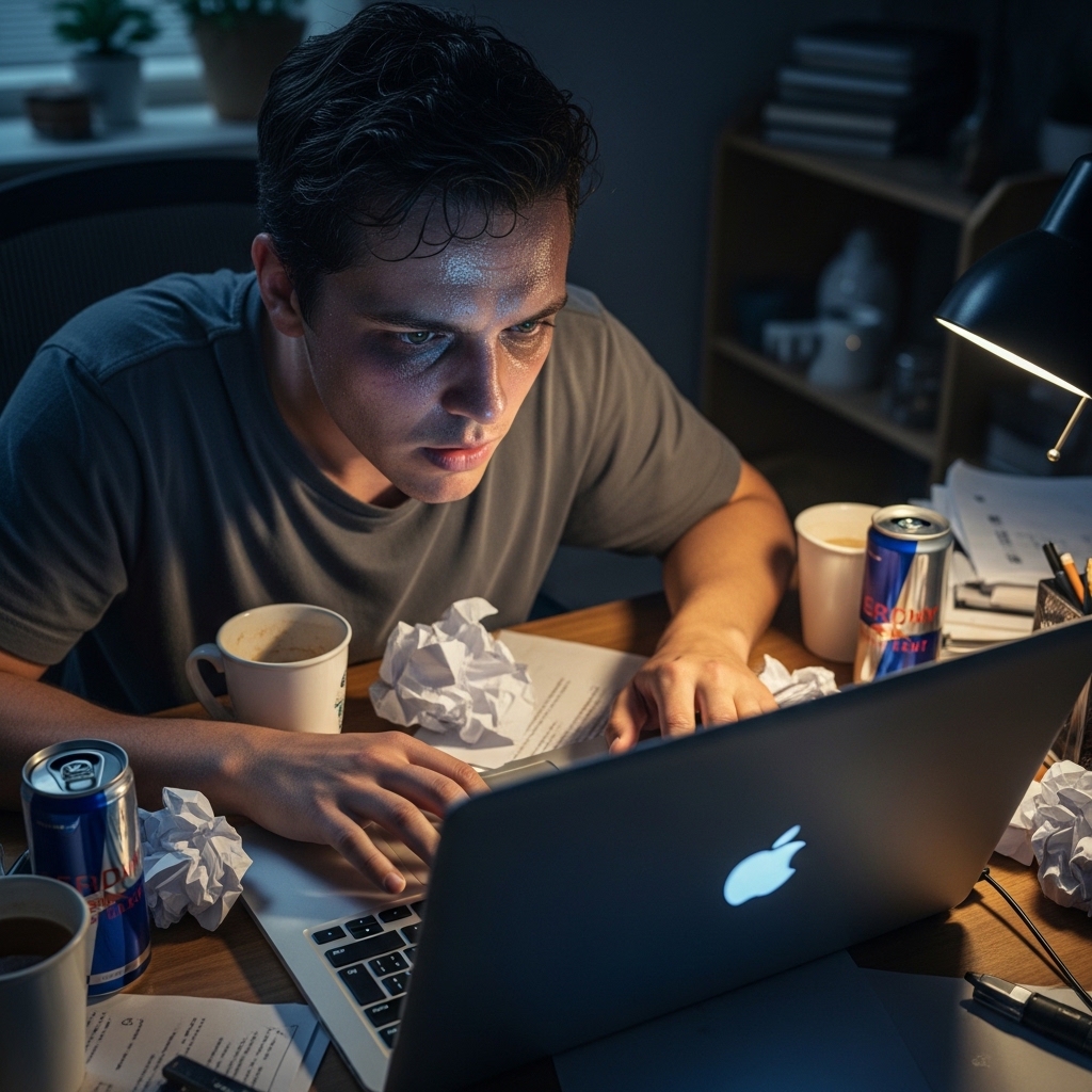 Chronic cortisol elevation stimulates androgen production. Androgens, in turn, directly increase oil gland activity. Disrupted sleep reduces the overnight skin repair cycle. As a result, daytime oil production rises as a balancing response. Chronic inflammation — a key feature of the professional stress profile — further makes oil glands more reactive to hormonal signals.