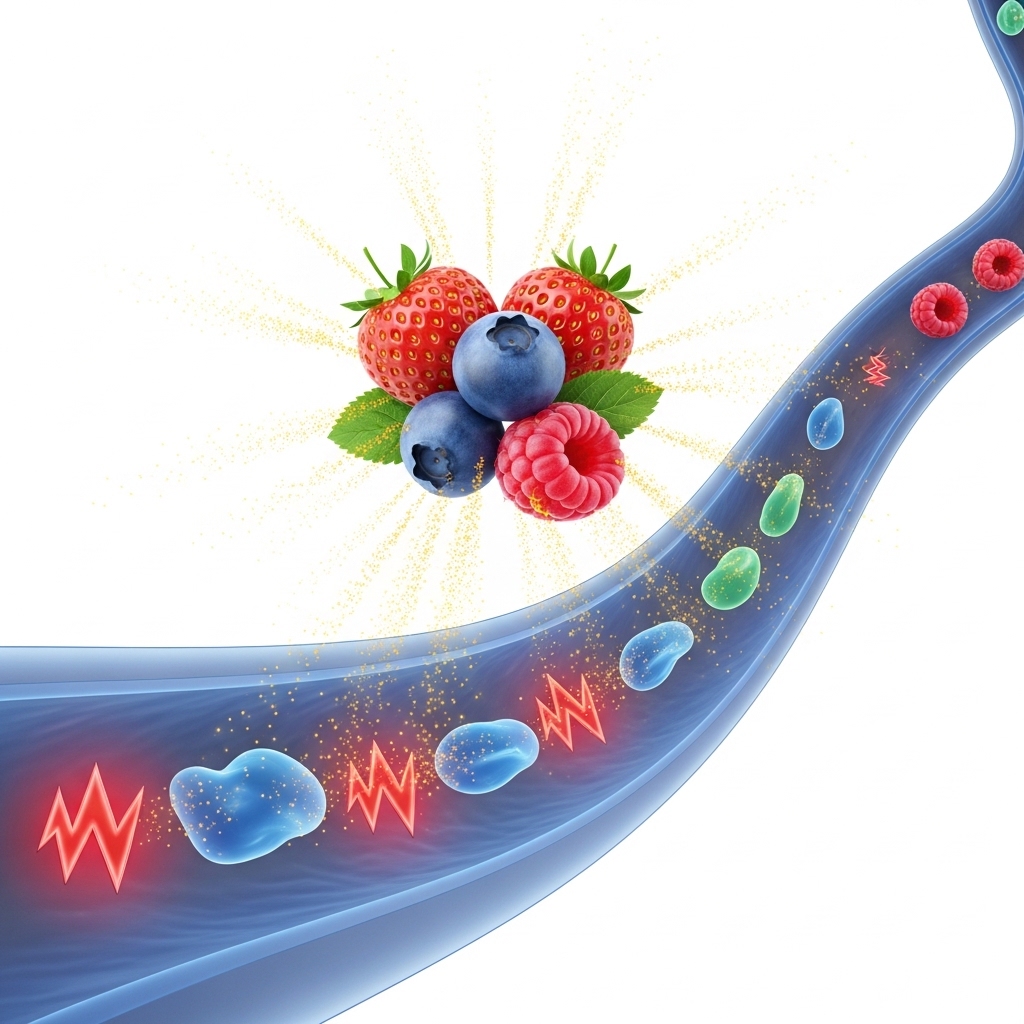These compounds reduce circulating inflammatory markers including C-reactive protein and interleukin-6. Research from the Harvard T.H. Chan School of Public Health, drawing on data from the Nurses' Health Study, links regular berry consumption to slower cognitive decline and reduced cardiovascular risk.