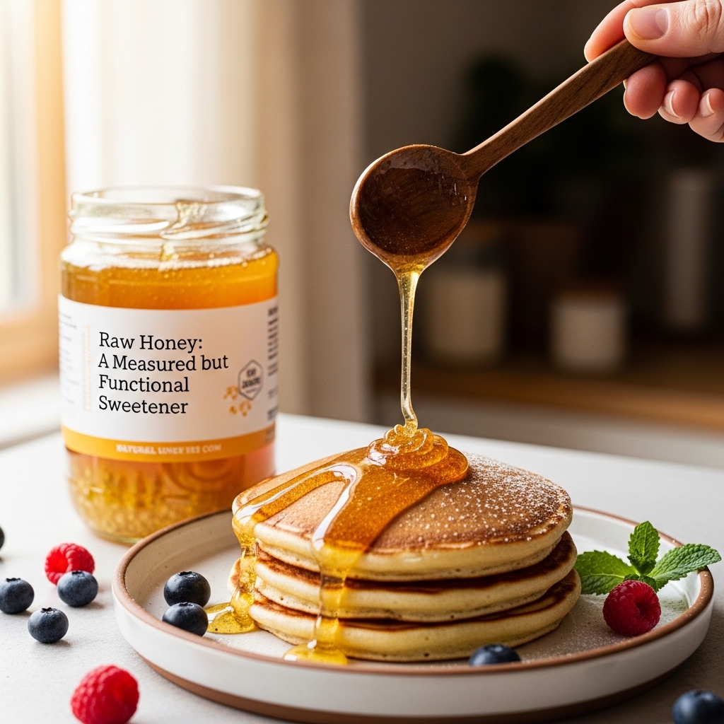 Used in small amounts within healthy sweet snacks, raw honey provides functional compounds that refined sugar does not offer. Its benefits are dose-dependent. They do not extend to liberal use.