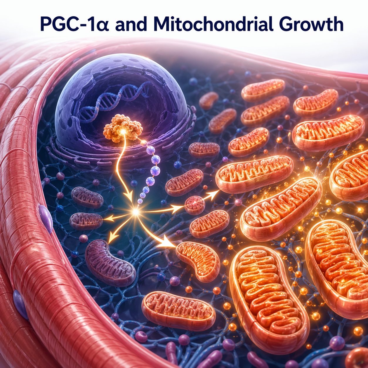 Exercise science often points to PGC-1α as a key regulator of aerobic adaptation. This signaling pathway helps drive mitochondrial biogenesis, which means the body builds more mitochondrial capacity over time. Research on endurance exercise supports this general mechanism. Repeated aerobic work changes muscle in a useful way. It becomes better at producing energy through oxygen-based pathways.