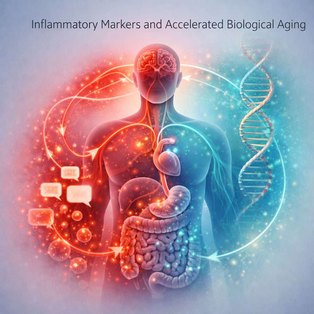 Chronic psychological stress drives systemic inflammation through multiple pathways. Sustained cortisol elevation, sympathetic nervous system activation, and disrupted sleep all promote the release of pro-inflammatory signaling molecules — including interleukin-6 and tumor necrosis factor-alpha. These markers associate with accelerated biological aging, reduced immune function, and increased risk of metabolic and cardiovascular disease.