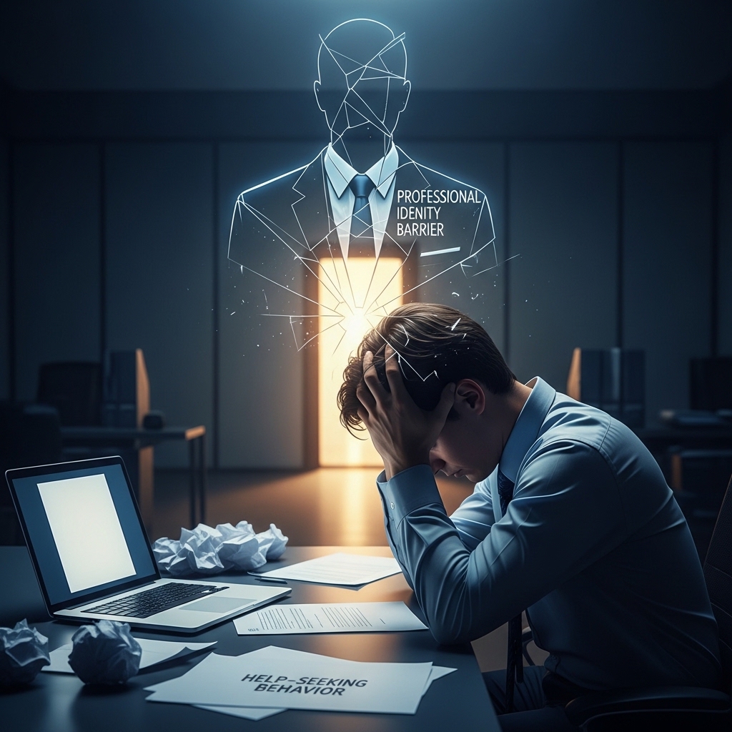 The most significant structural barrier to men's mental health intervention in professional populations is not access — it is identity. High-achieving men frequently build professional identities around self-sufficiency, resilience, and the management of uncertainty without visible distress. Seeking psychological support can feel inconsistent with that identity. Within professional peer cultures, it can also be perceived that way.