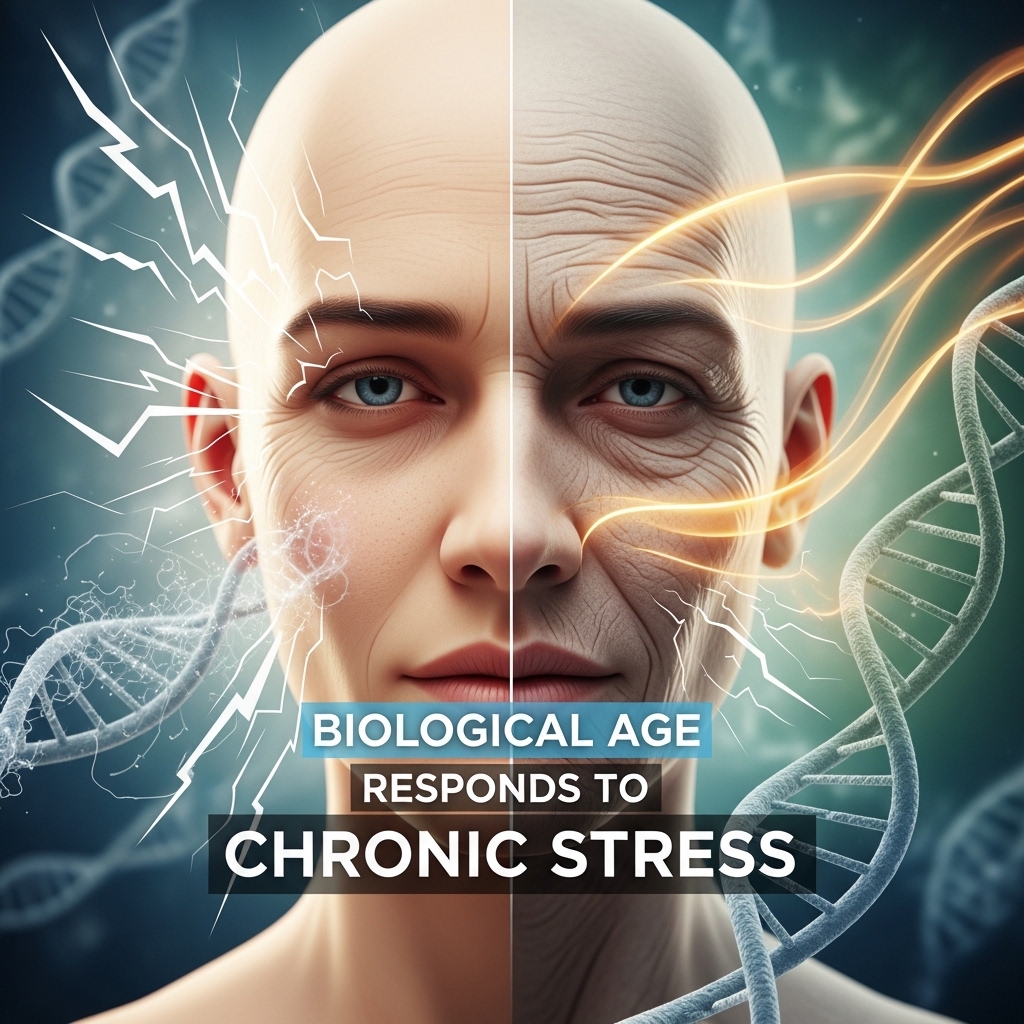 Biological age is sensitive to chronic stress. Research in Molecular Psychiatry found that mental and biologic resilience changed the link between stress and epigenetic age acceleration. This suggests that stress burden and resilience capacity can affect aging in measurable ways.