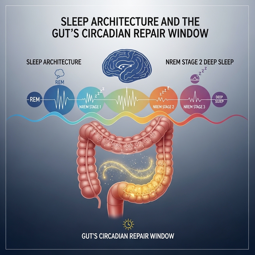 The gut microbiome follows its own circadian rhythm. Microbial activity and tight junction integrity both vary across the 24-hour cycle. Sleep deprivation disrupts intestinal circadian gene expression. It reduces tight junction protein expression during overnight repair windows. It also alters microbial composition within days of sleep restriction onset.