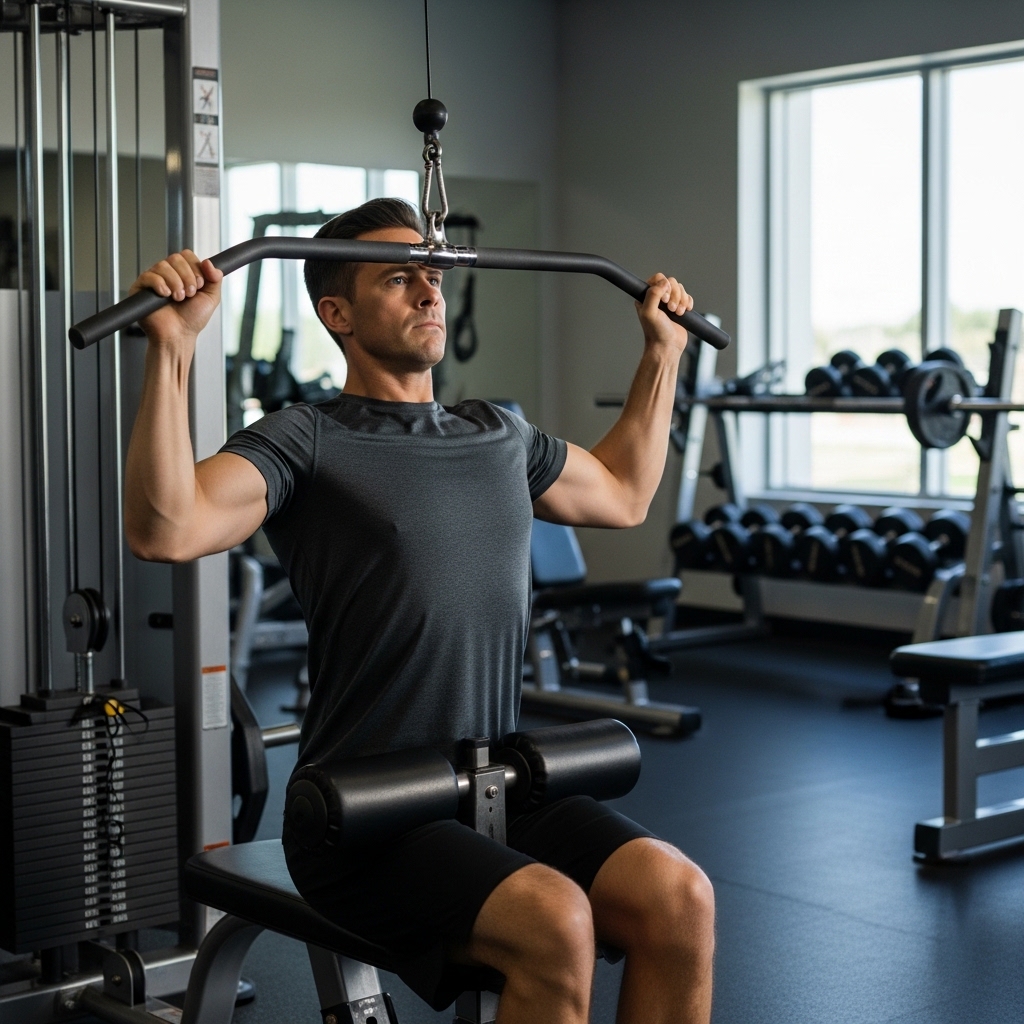 The lat pulldown addresses posterior chain deficits through a controlled, scalable pulling pattern. It does not require the baseline mobility or stability that pull-ups demand. This makes it particularly relevant for professionals returning to structured resistance training after extended inactivity.
