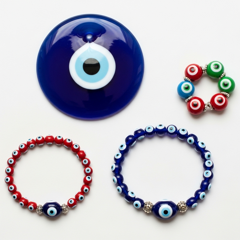 The evil eye bead is another form of the symbol, often worn as evil eye jewelry or used for decoration. Evil eye necklaces, bracelets, and other jewelry feature various colors, like light blue or even green. Each color holds its own meaning. For example, light blue protects against emotional negativity, while dark blue shields against stronger bad intentions. These variations reflect how the evil eye symbol is embedded in different cultures, each adapting it for protection and healing.