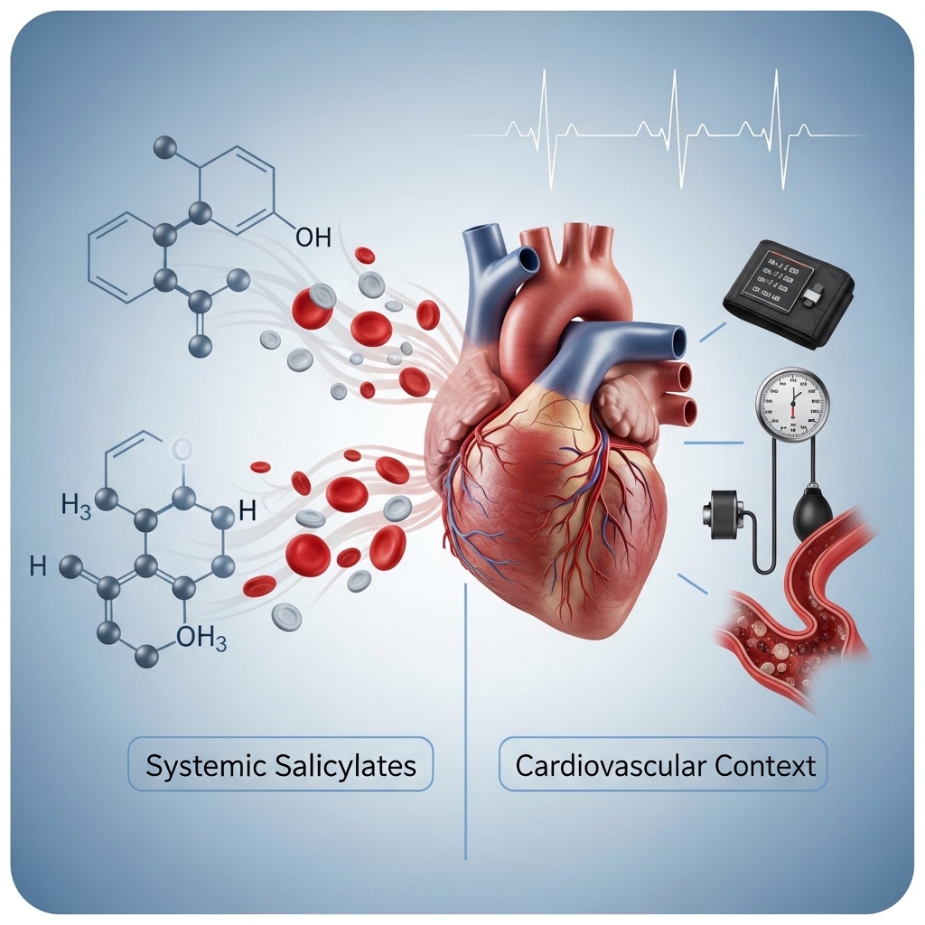 As a result, it does not replicate the cardiovascular or anti-platelet effects of oral salicylates. Professionals managing cardiovascular risk through medical supervision should therefore not conflate these two applications. The skin-level and systemic contexts are entirely distinct.