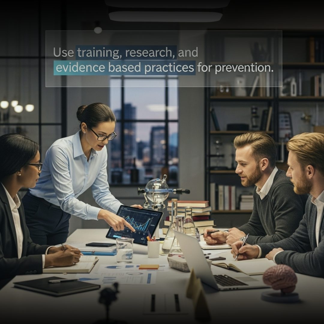 Use training, research, and evidence based practices for prevention